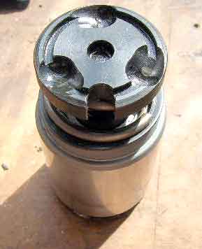 8. Проверить работоспособность. Если попробовать вращать цилиндр скобой (рис. 15), он должен вывинчиваться, и, главное, — ввинчиваться. Это признак того, что стопорные кольца встали на свои места. Иначе надо вывинтить цилиндр, достать сборку, заново выполнить пункты 5 и 6.